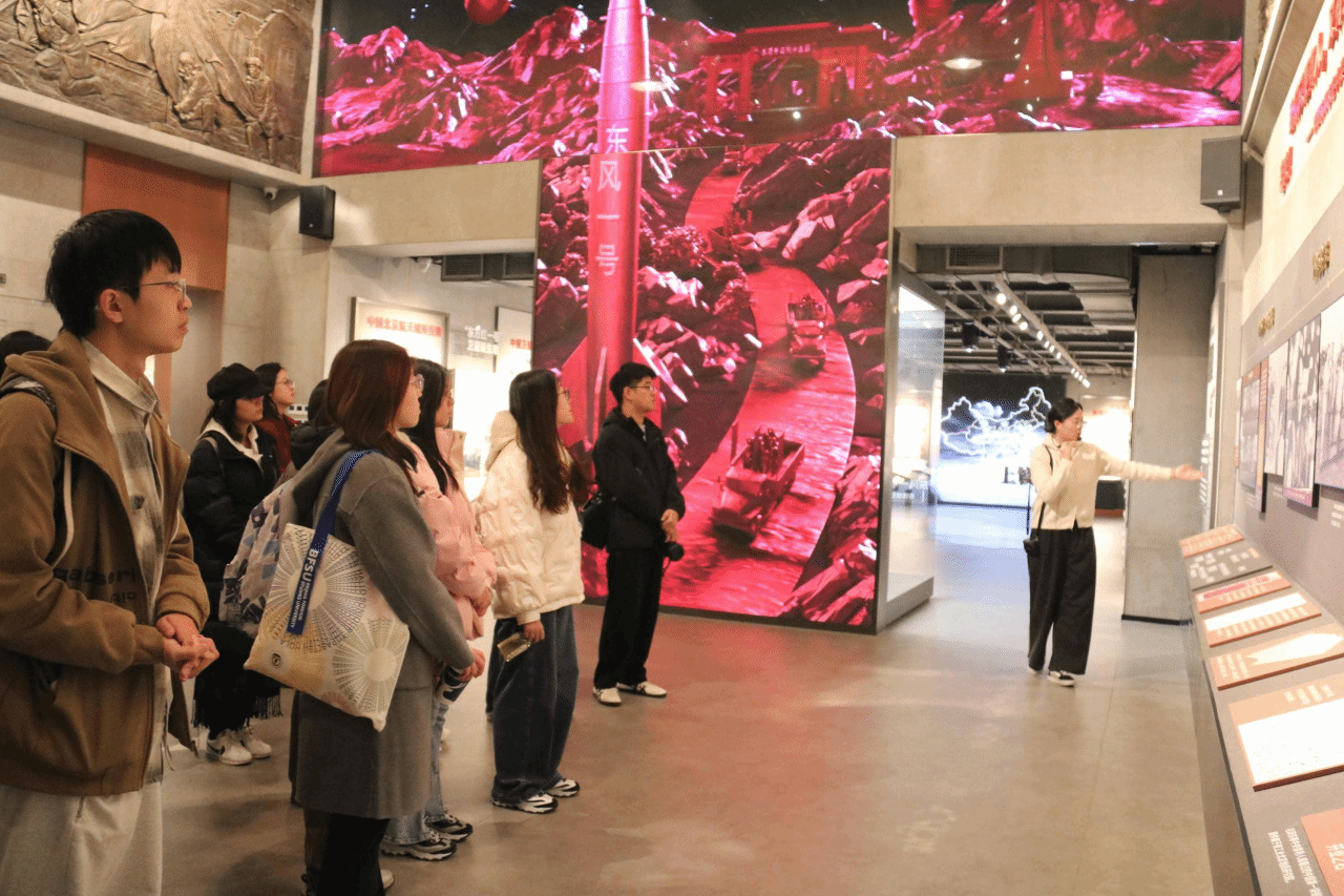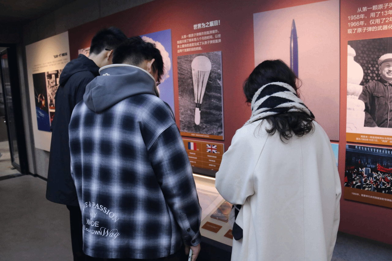 在科技园专业讲解员的引导下,同学们共同参观了“两弹一星”主题展览。展厅内,从泛黄的科研手稿到模拟科研营地的场景复原区,从艰苦的创业历程到辉煌的航天成就,同学们深刻体会到老一辈科技工作者在物资匮乏年代自力更生、艰苦奋斗的坚定信念与报国情怀。一件件实物、一段段故事,让“热爱祖国、无私奉献,自力更生、艰苦奋斗,大力协同、勇于登攀”的“两弹一星”精神跨越时空,深深烙印在每位同学心中。