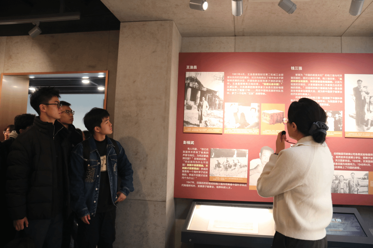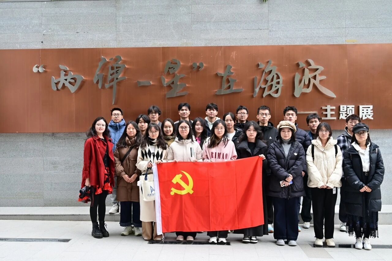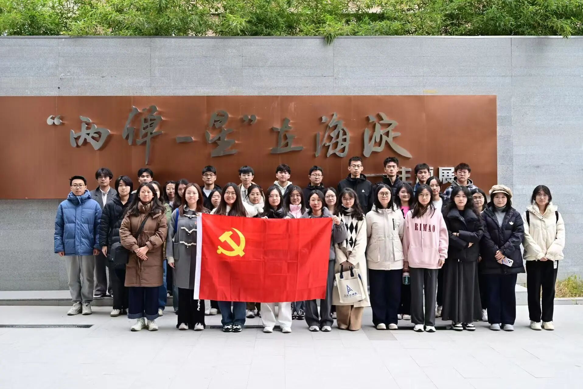 同学们循着历史脉络,认真聆听“两弹一星”元勋们隐姓埋名、以身许国的动人故事:从钱学森先生冲破重重阻碍归国投身科研,到邓稼先同志在戈壁滩上带领团队攻克技术难关,再到无数无名科研工作者“干惊天动地事,做隐姓埋名人”的奉献…… 大家仿佛穿越时空,置身于那个攻坚克难的年代,深刻体会到“两弹一星”精神背后,是一代代人对国家富强、民族复兴的不懈追求。参观尾声,两支部成员在场馆前合影留念,让红色记忆定格在这一刻。
